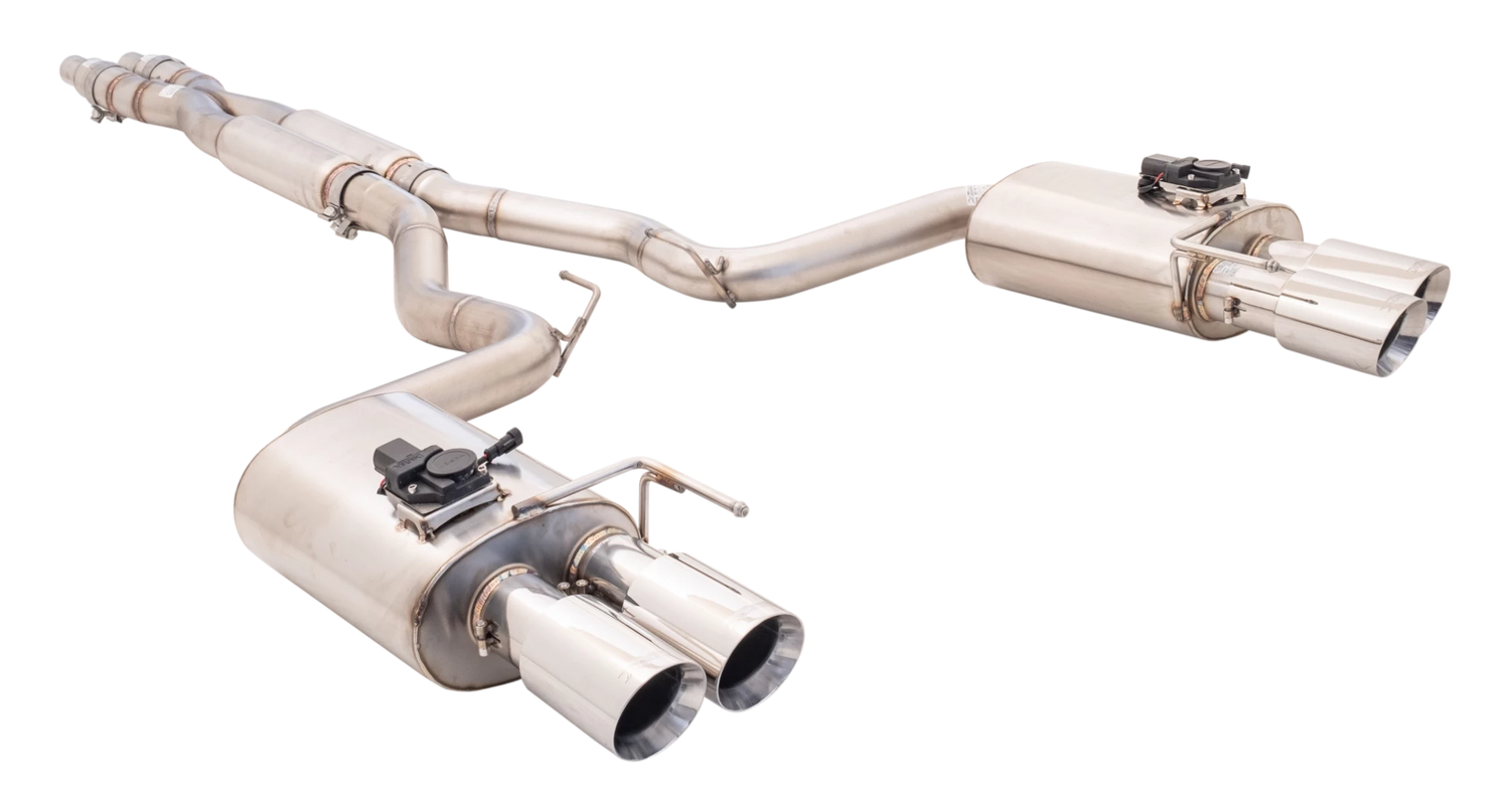 XForce - FORD MUSTANG FN GT FASTBACK COYOTE 5.0L (07/2017-on) Stainless Steel Twin 3″ Cat-Back System With Quad 4″ Tips