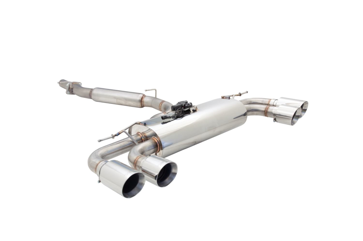 • Quad 4″ polished stainless tip outlet