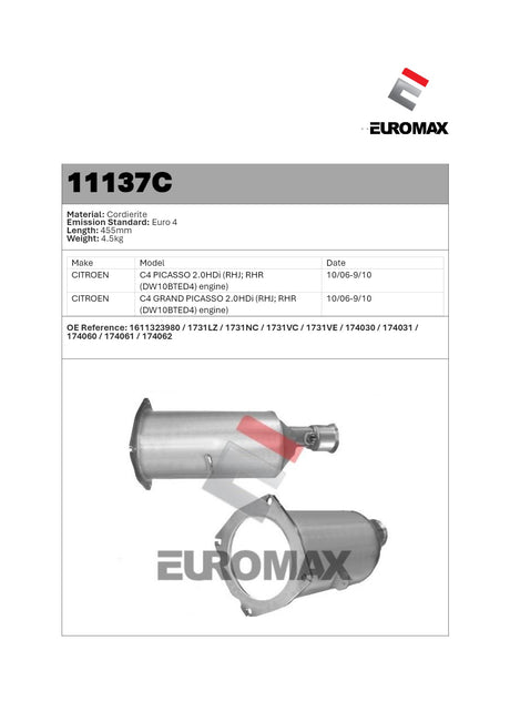 DPF Kit for Citroen C4 2.0L DW10BT Euro 5 (2008–2011) – Euromax Diesel Particulate Filter
