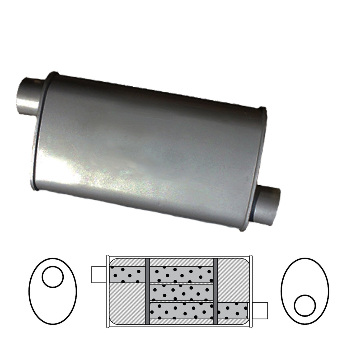 Universal Muffler 8" x 3 1/2" Oval, 12" Long, 1 1/2"