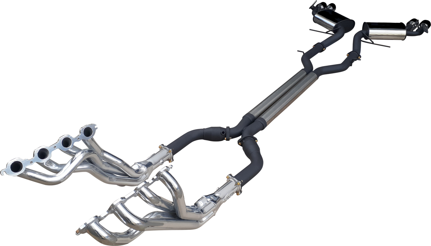 - Performance Built: Twin 3" pipework, 1 7/8" ceramic coated extractors, bi-modal valves, and quad 4" tips for the ultimate V8 upgrade