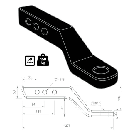 TAG | Heavy Duty Tow Ball Mount | 220mm Long 50mm Drop 50mm Square Hitch | L4314